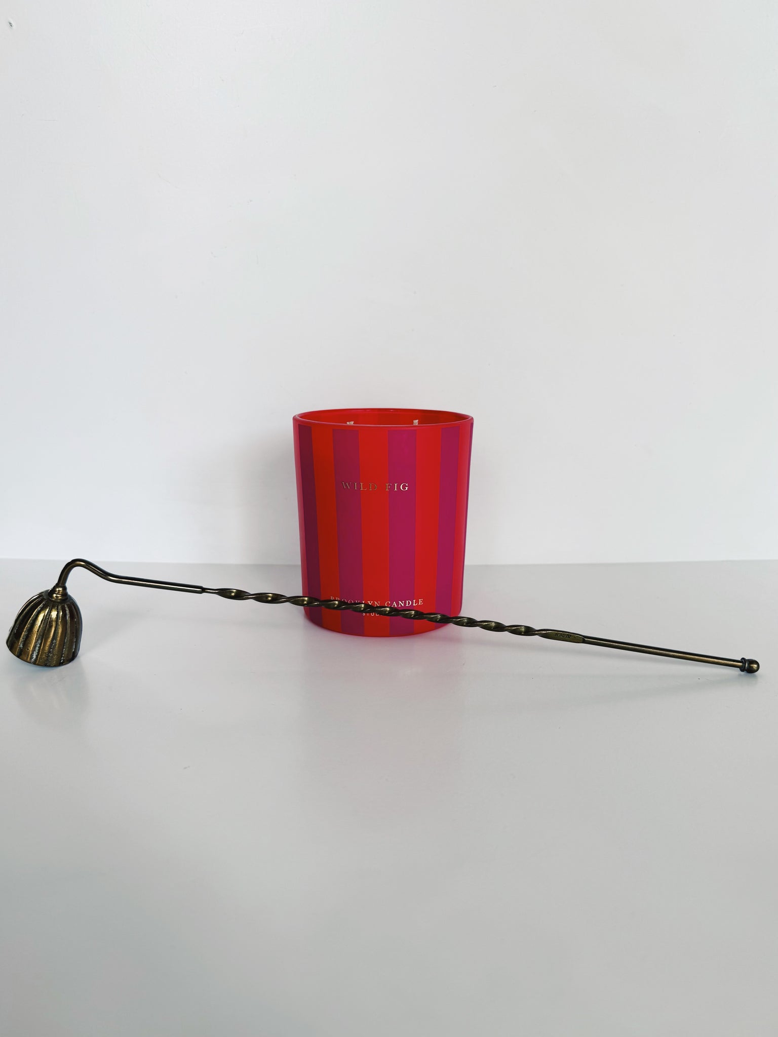 Really pretty brass candle snuffer. Features really unique and beautiful details like the fluted snuffer and twisted handle.