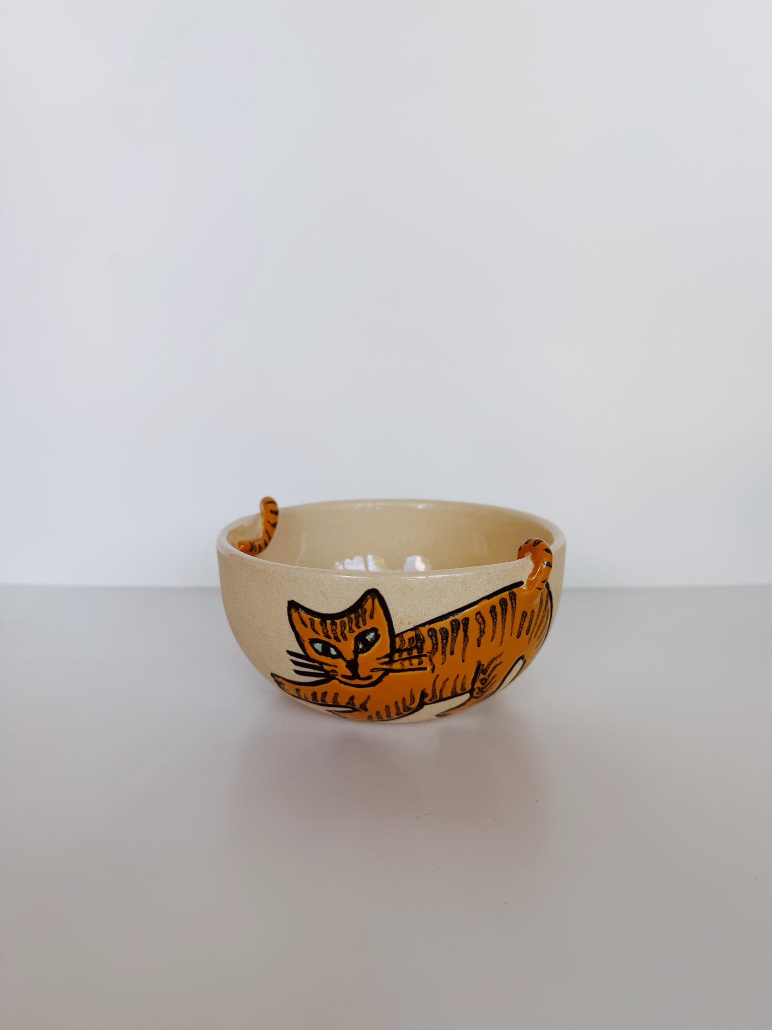 Intricately designed orange cat bowl. Fabulous artistic piece + functional for your home!